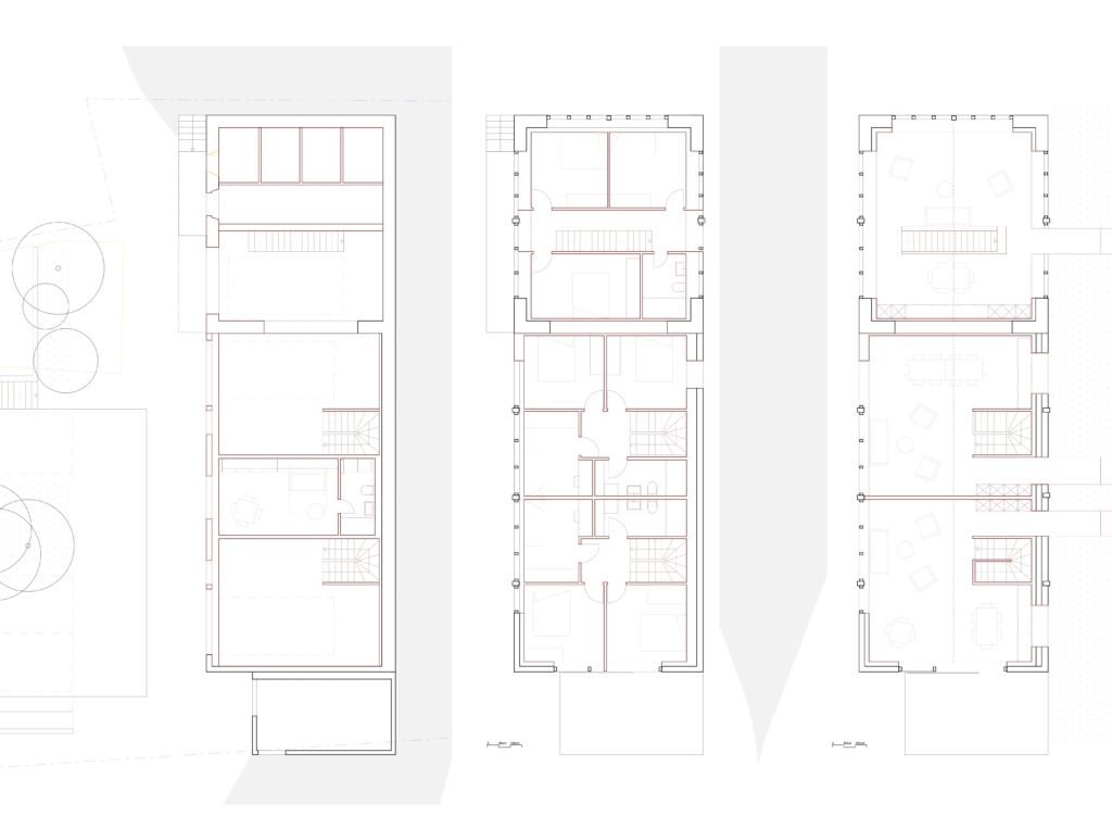 Cette écurie située dans le village de Liddes n’est plus utilisée pour la ferme. La nouvelle génération d’exploitants se questionne sur les potentialités du volume. Ce dernier est très généreux, il est donc possible de réfléchir à un changement d’affection pour permettre un petit collectif composé de 3 petites maisons juxtaposées (3 chambres et un garage). Elles partagent les espaces techniques dans l’ancienne fosse à purin, les caves, un parking extérieur avec jardin et un studio pour leurs visites.